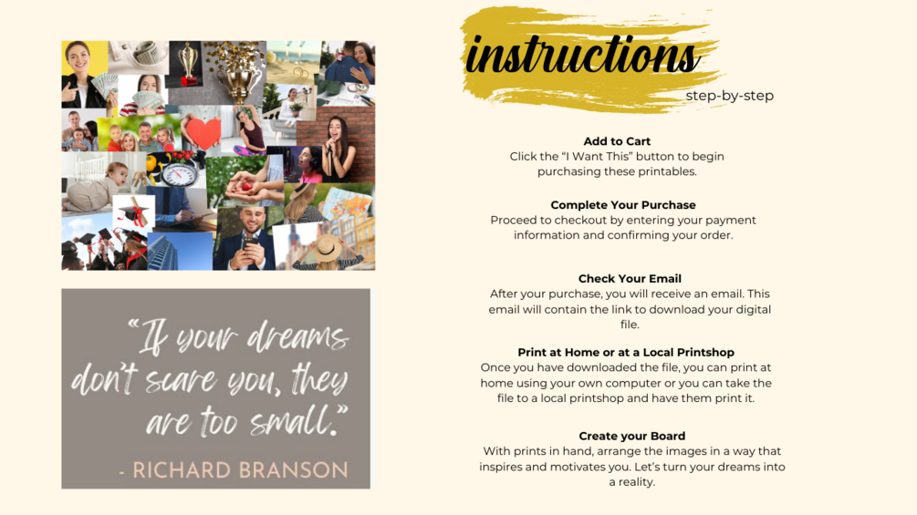 - Design Your Board: Set the stage for your aspirations! Arrange the printables on a vision board, allowing your dreams to visually manifest.